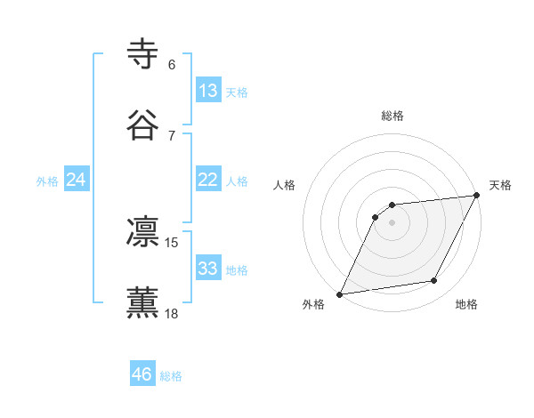 寺谷 凛薫さんの天格は13画の5点!