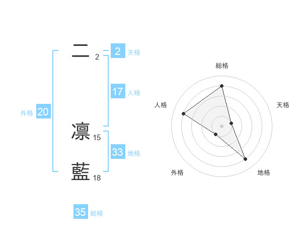 二 凛藍さんの総格は35画の4点!
