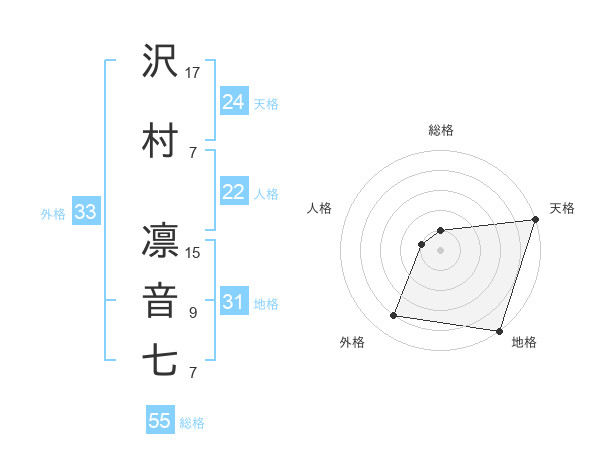 沢村 凛音七さんを姓名の画数から五運を鑑定
