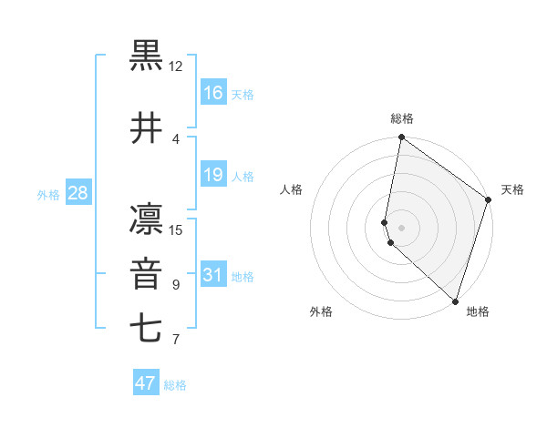 黒井 凛音七さんの総格は47画の5点!