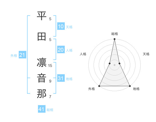 平田 凛音那さんを姓名の画数から五運を鑑定