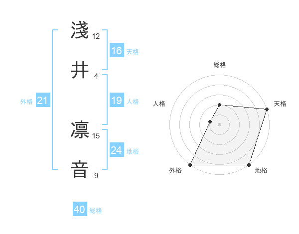 淺井 凛音さんの地格は24画の5点!