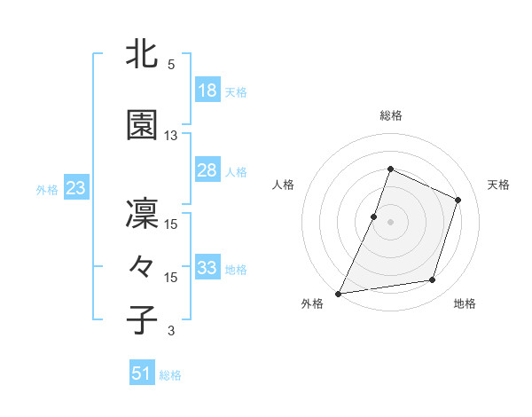 北園 凜々子さんの外格は23画の5点!