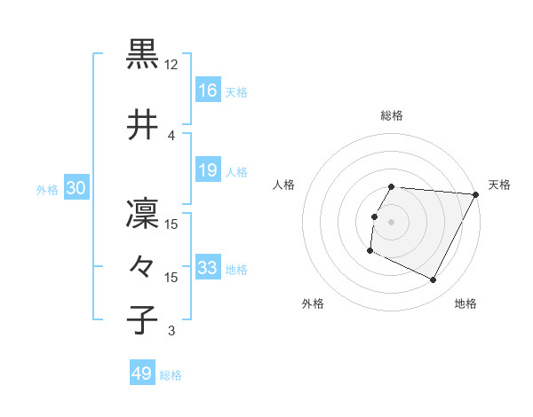 黒井 凜々子さんを姓名の画数から五運を鑑定