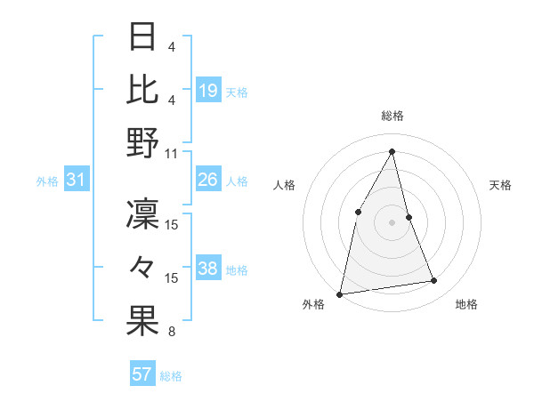 日比野 凜々果さんを姓名の画数から五運を鑑定