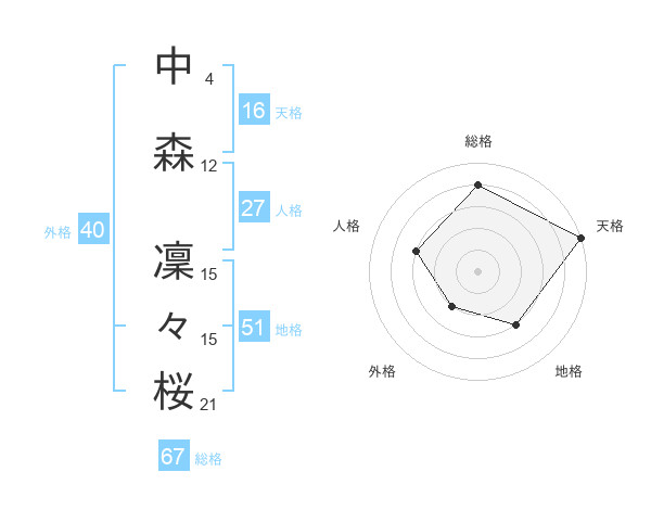 中森 凜々桜さんを姓名の画数から五運を鑑定