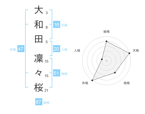 大和田 凜々桜さんを姓名の画数から五運を鑑定