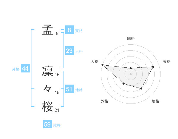 孟 凜々桜さんの地格は51画の3点!