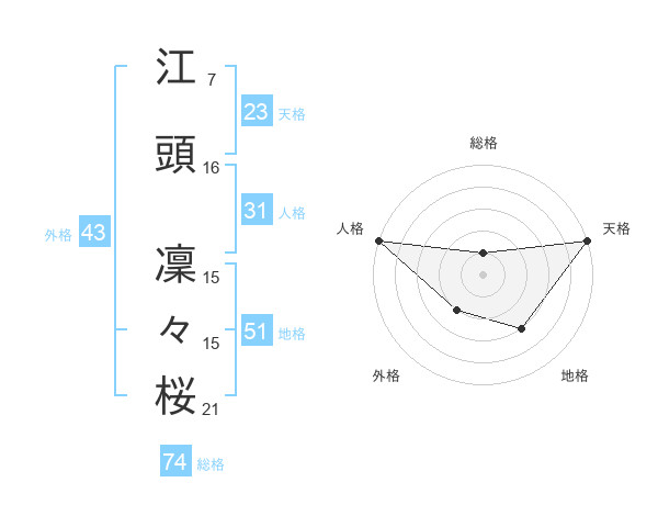 江頭 凜々桜さんの総格は74画の1点!