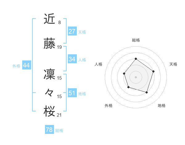 近藤 凜々桜さんを姓名の画数から五運を鑑定