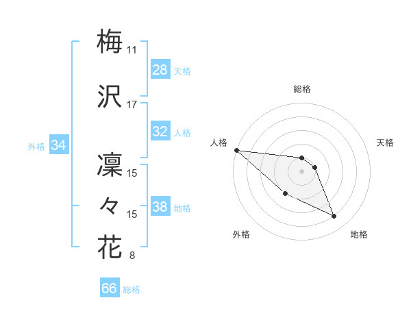 梅沢 凜々花さんの総格は66画の1点!