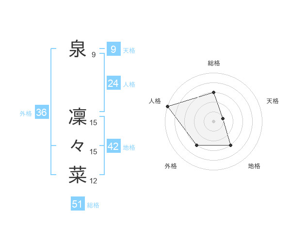 泉 凜々菜さんの総格は51画の3点!