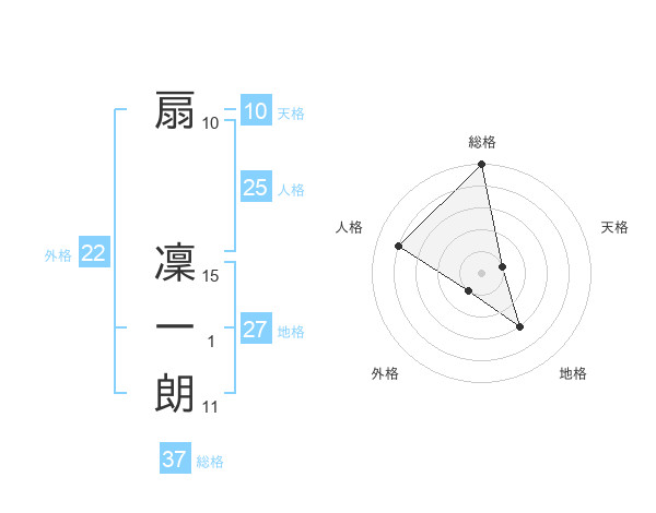扇 凜一朗さんの総格は37画の5点!