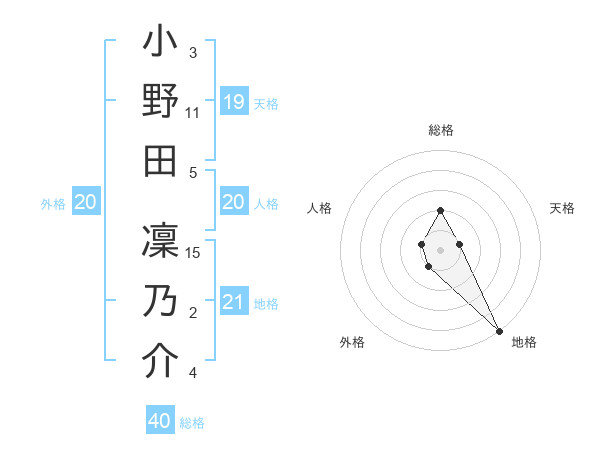 小野田 凜乃介さんを姓名の画数から五運を鑑定