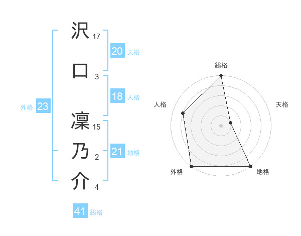 沢口 凜乃介さんの総格は41画の5点!
