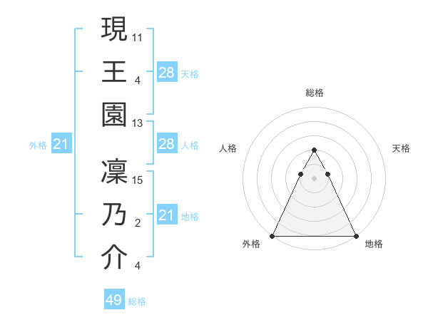 現王園 凜乃介さんを姓名の画数から五運を鑑定