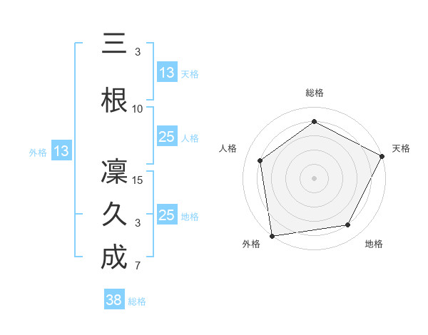 三根 凜久成さんを姓名の画数から五運を鑑定