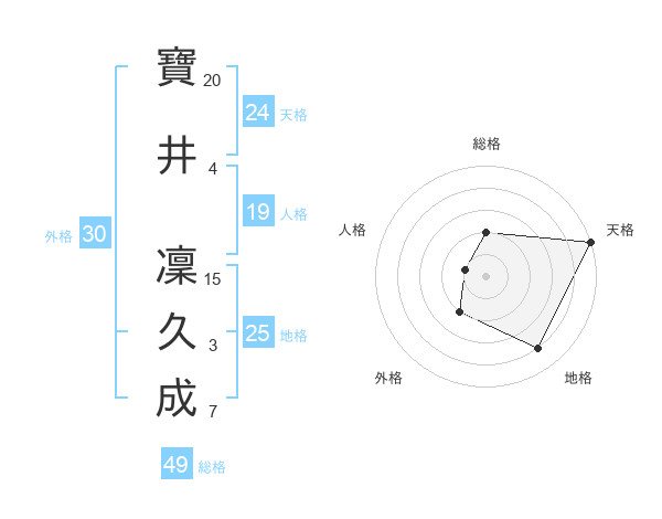 寶井 凜久成さんを姓名の画数から五運を鑑定
