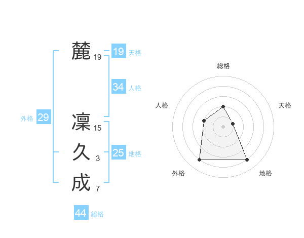 麓 凜久成さんを姓名の画数から五運を鑑定