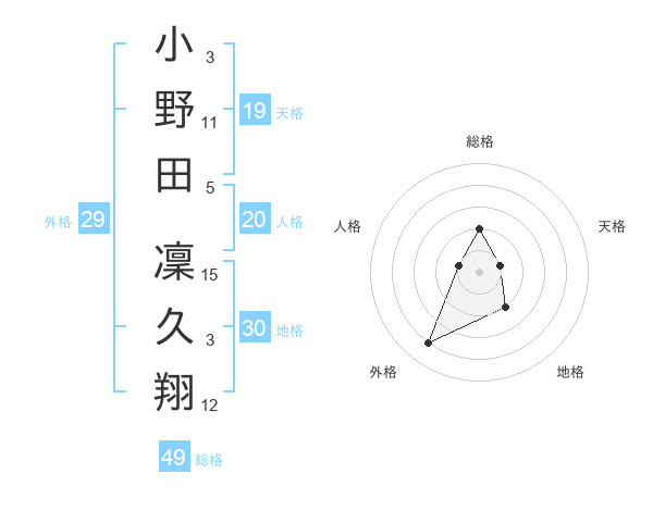 小野田 凜久翔さんを姓名の画数から五運を鑑定