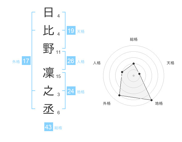日比野 凜之丞さんを姓名の画数から五運を鑑定
