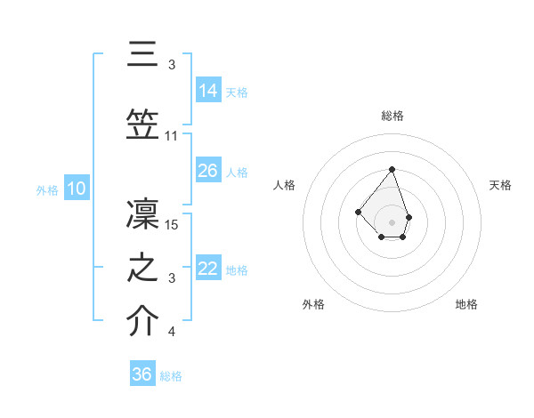 三笠 凜之介さんの天格は14画の1点!