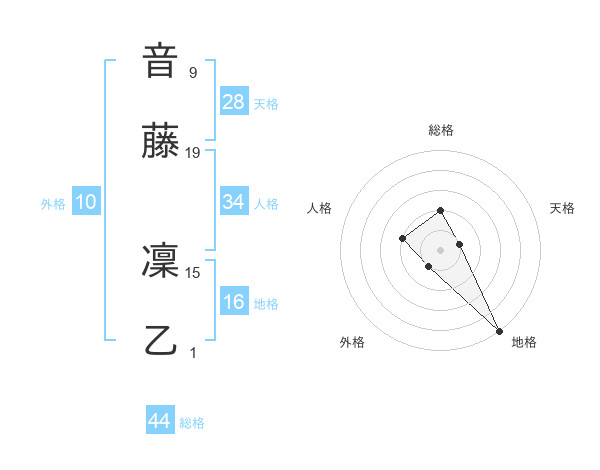 音藤 凜乙さんの総格は44画の2点!