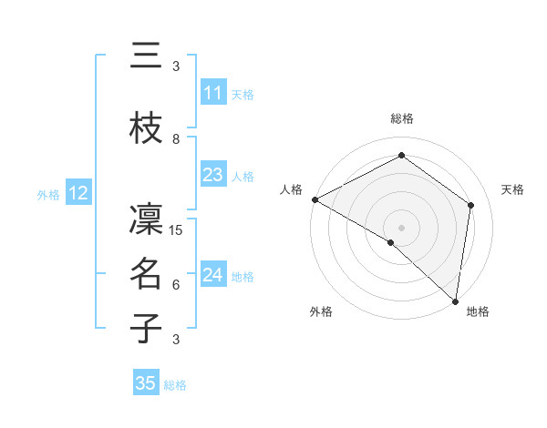 三枝 凜名子さんの総格は35画の4点!