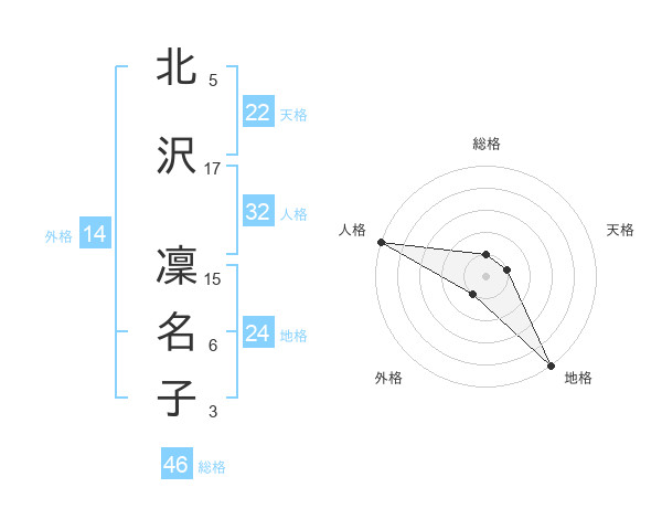 北沢 凜名子さんの外格は14画の1点