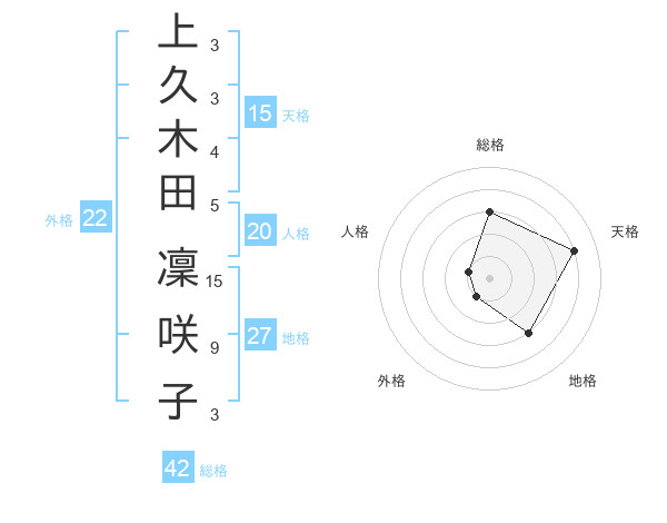 上久木田 凜咲子さんの外格は22画の1点!