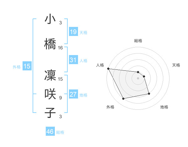 小橋 凜咲子さんを姓名の画数から五運を鑑定