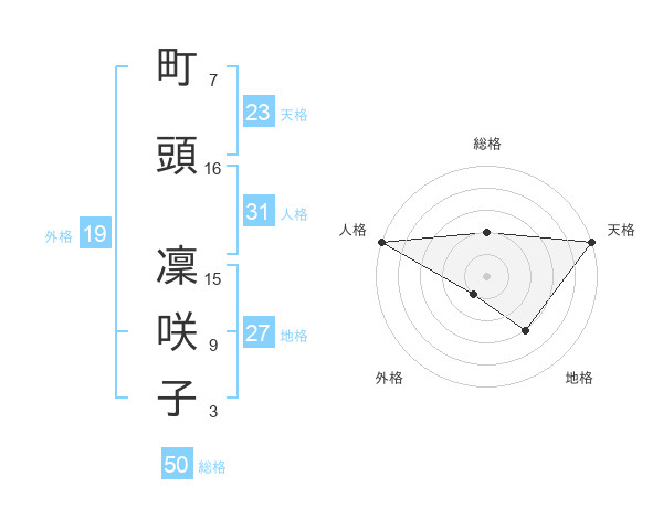 町頭 凜咲子さんの総格は50画の2点!