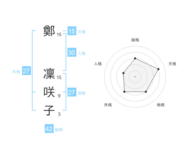 鄭 凜咲子さんの天格は15画の4点!