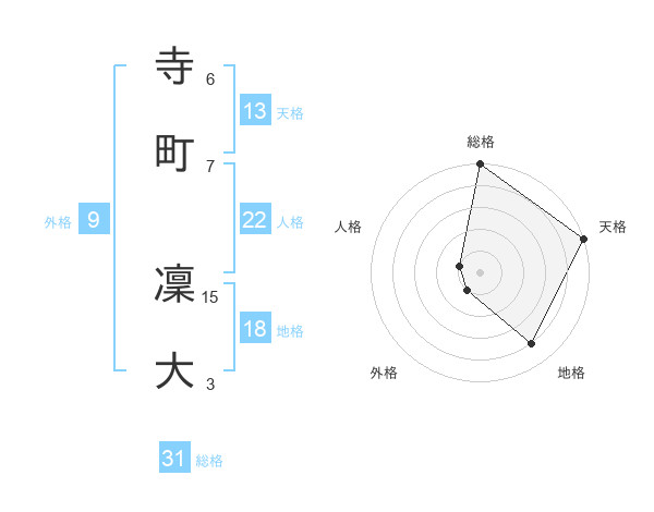 寺町 凜大さんの総格は31画の5点!