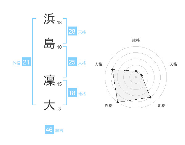 浜島 凜大さんの総格は46画の1点!