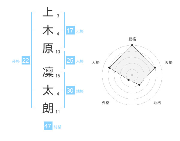 上木原 凜太朗さんの総格は47画の5点!