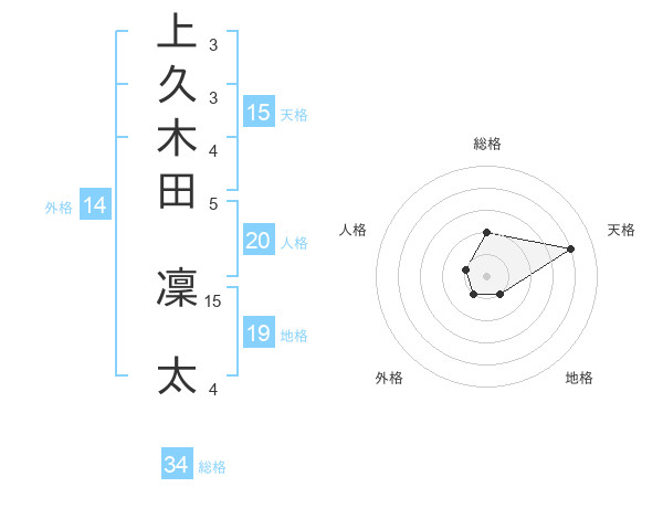 上久木田 凜太さんの天格は15画の4点!