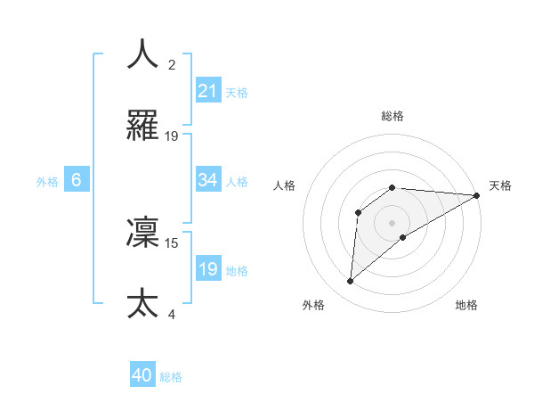 人羅 凜太さんの総格は40画の2点!