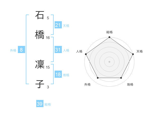 石橋 凜子さんを姓名の画数から五運を鑑定