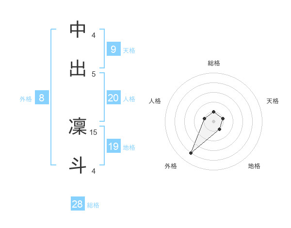 中出 凜斗さんを姓名の画数から五運を鑑定