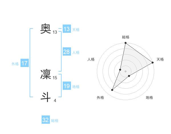 奥 凜斗さんを姓名の画数から五運を鑑定