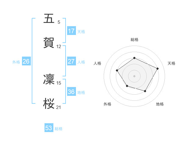 五賀 凜桜さんを姓名の画数から五運を鑑定
