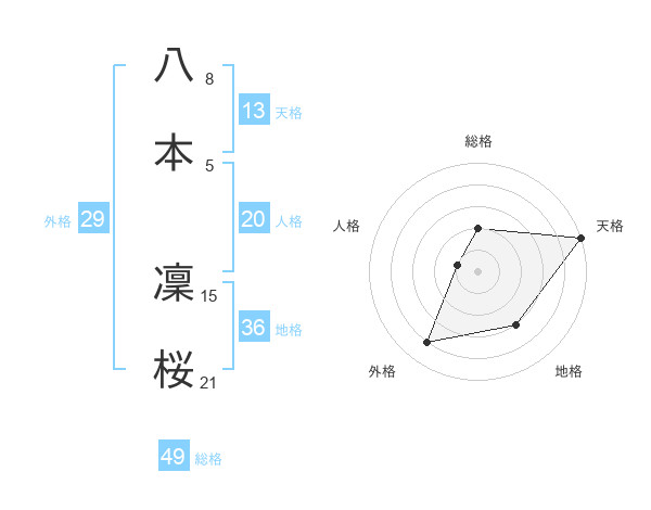 八本 凜桜さんを姓名の画数から五運を鑑定
