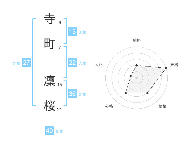 寺町 凜桜さんの天格は13画の5点!