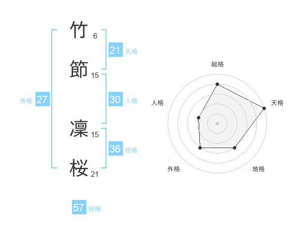 竹節 凜桜さんの総格は57画の4点!
