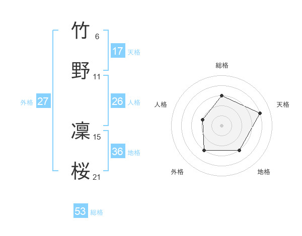 竹野 凜桜さんを姓名の画数から五運を鑑定