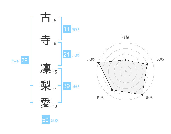 古寺 凜梨愛さんの総格は50画の2点!