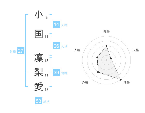 小国 凜梨愛さんの総格は53画の3点!