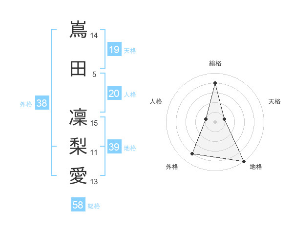 嶌田 凜梨愛さんの総格は58画の4点