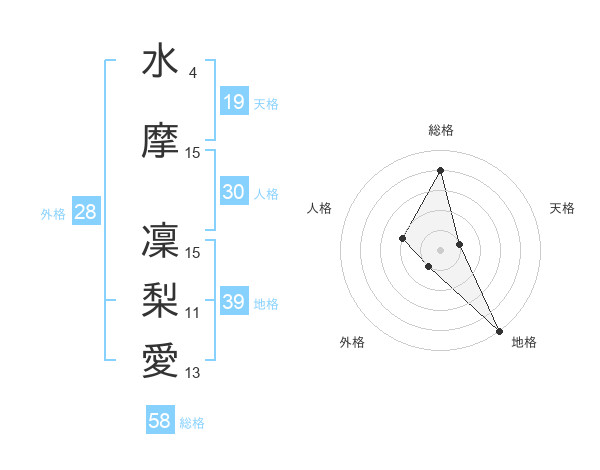 水摩 凜梨愛さんの地格は39画の5点!